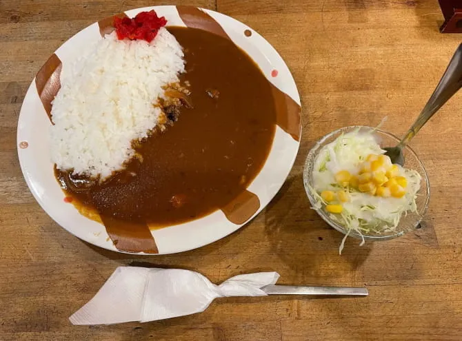 このサイトを見て、気になったので食べに行きました。 テーブル席が並ぶ広めの店内で、最近では珍しい全席喫煙OKの喫茶店。見た目は欧風カレーのようなルウで、給食のカレーを大人向けにアレンジされた感じだけど辛すぎない美味しいカレーでした! 私は中辛と辛口の間くらいが好きなので、ピリ辛ウィンナーのトッピングすることで丁度いい辛さを引き出すことに成功しました! アフターコーヒーも人気のお店らしいので、次回は食後のコーヒーも楽しみに行こうと思います。