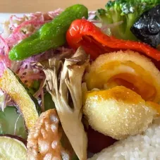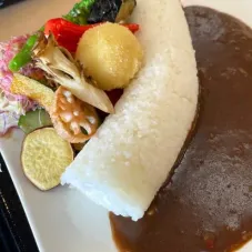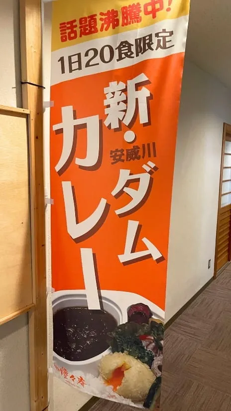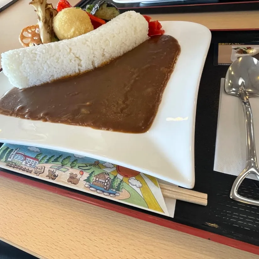 ダムカレーを食べてみたくて行きました。 竜王山荘という建物内にあり、建物へ入って早速「燈々庵」へ入店。 スコップの形をした可愛いスプーンで、ダムカレーは全体的にボリュームたっぷりで大満足でした! カレーは中辛くらいなので、辛口が苦手な方も食べられる辛さだと思います。 野菜が超新鮮で全て美味しくいただきました!また行きたいです。