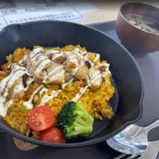白米の量が選べるので、大盛りの350gを注文。 ルーに果物の甘みを感じる、優しいながらもいろんな素材の味を感じられる逸品です。 聞けば、「理想のスープにならなかったのでランチ営業は中止」となった日があるとの事。 そのこだわりが詰まったカレーなんだろうなぁ〜、と思います。 もう一枚は、ドライカレータンドリーチキン添え。 ガーリックマヨがインパクトになって、ご飯も進みます。