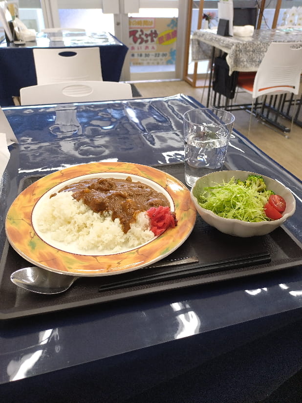 100円でサラダ追加の、ランチセットをいただきました。日本の家庭のカレーライスといいつつ、家では作れない味わいです。野菜の甘みが効いていて、子どもでも食べられそうです。タッパ持参でルーだけ買って帰るお客さんもいたので、うちも晩御飯用に買って帰りました!